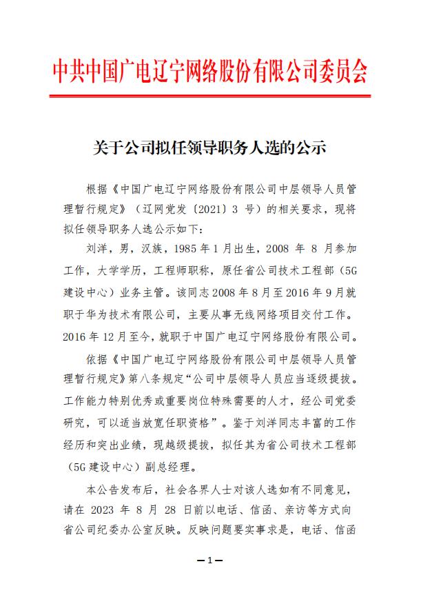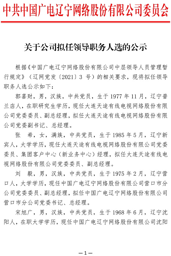 關(guān)于公司擬任領(lǐng)導職務(wù)人選的公示